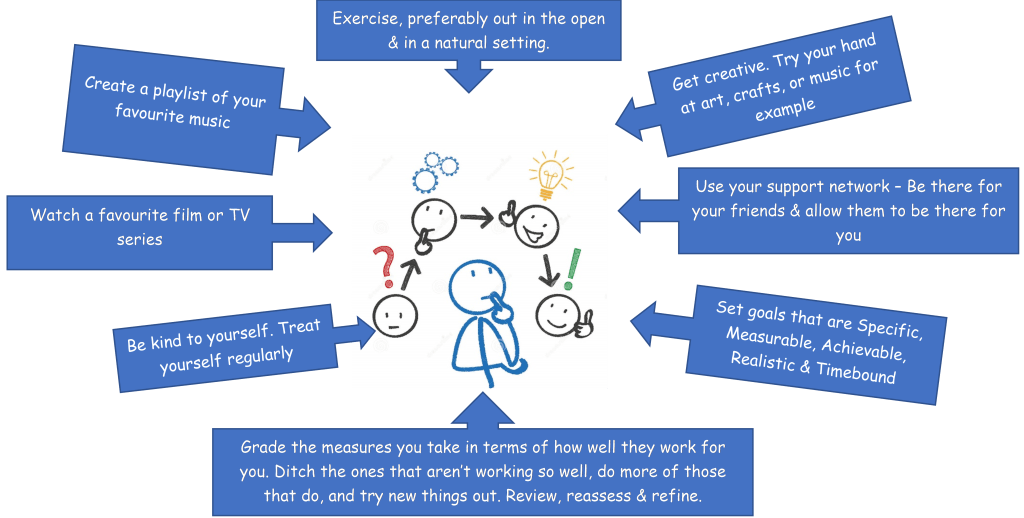 As we take our first few tentative steps back into an open & free society, many of us may well feel anxious about what lies ahead. If you haven’t done so already, now is a good time to think about developing your own coping plan. If you are unsure where to start with this, the following graphic will give you some ideas and set you off in the right direction: