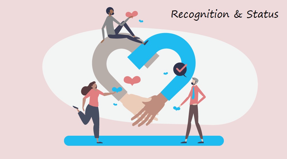 In this context, Recognition in part refers to our connection with others and our emotional needs which can be satiated through those connections. Status is achieved through the ‘recognition’ and appreciation of others.